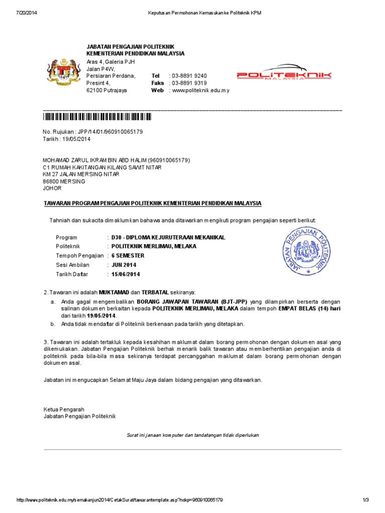 Semakan Keputusan Politeknik 2020 Online Tawaran Dan Rayuan