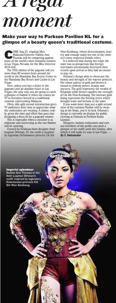 Pressreader The Star Malaysia 2010 07 29 A Beauty Queen S Traditional Costume