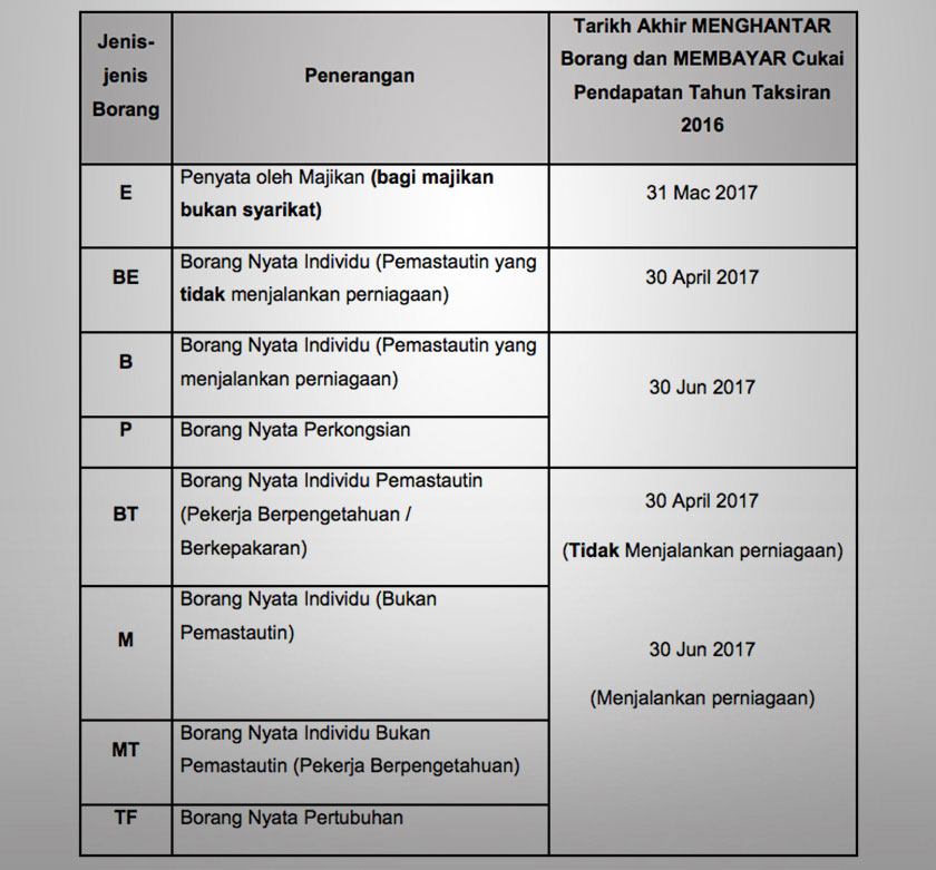 Panduan Cukai Malaysia Serahan Borang Nyata Cukai Pendapatan 2016 Mulai 1 Mac