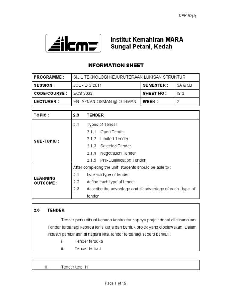 Bina Baru Pprt 3 Bilik Xlsx Sistem Tender Dokumen Dan