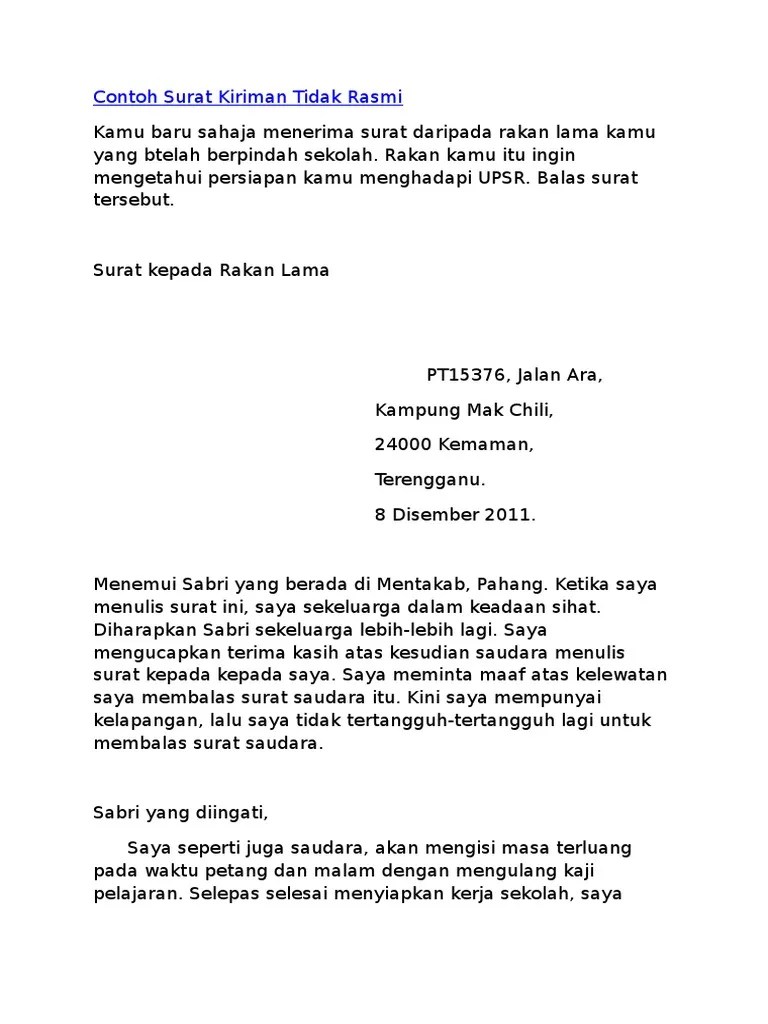 Contoh Karangan Jenis Surat Kiriman Tidak Rasmi Tingkatan 1 Rasmi Ri