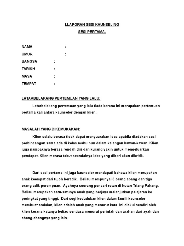 Pdf Laporan Kaunseling Kes Klien