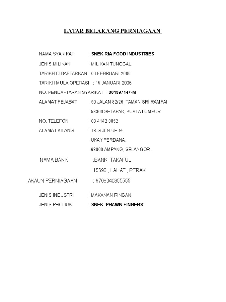 Pelan Perniagaan Makanan Ringan 1f1s Makanan Ringan