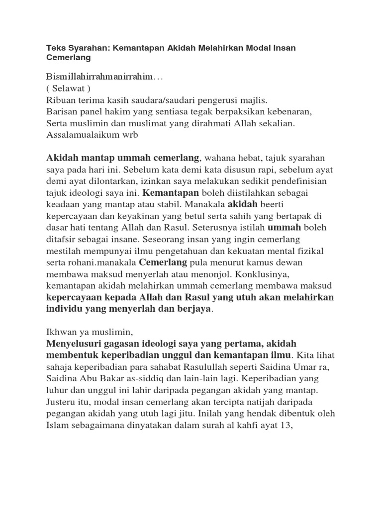 Contoh teks syarahan agama guru cemerlang ummah terbilang 1 0 pengenalan.