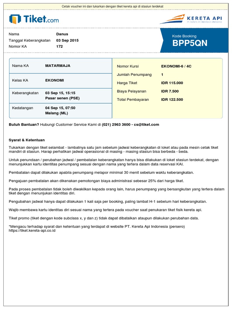 Contoh Struk Pembelian Tiket Kereta Api Loket Resmi Pembayaran Online