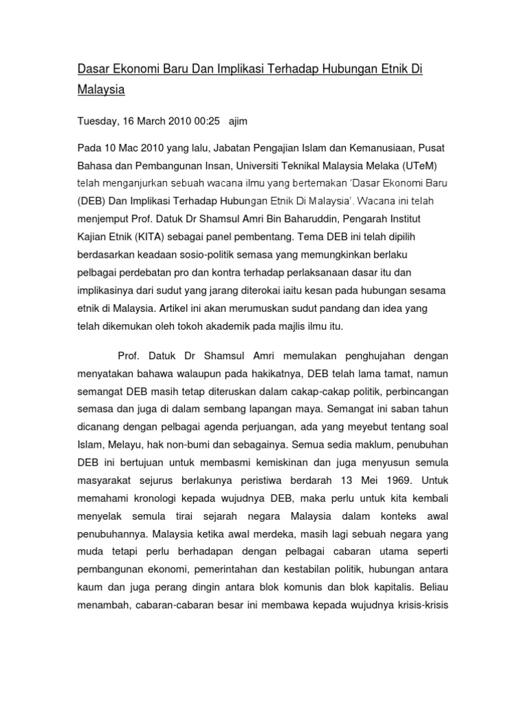 Dasar Ekonomi Baru Deb Dan Hubungan Kaum By Walerie Teng