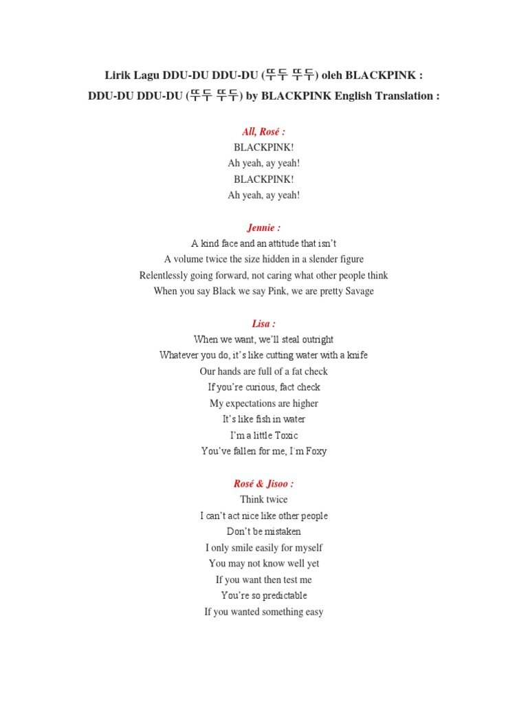 Trans The Lyrics Of Ddu Du Ddu Du Blackpink Babies Facebook