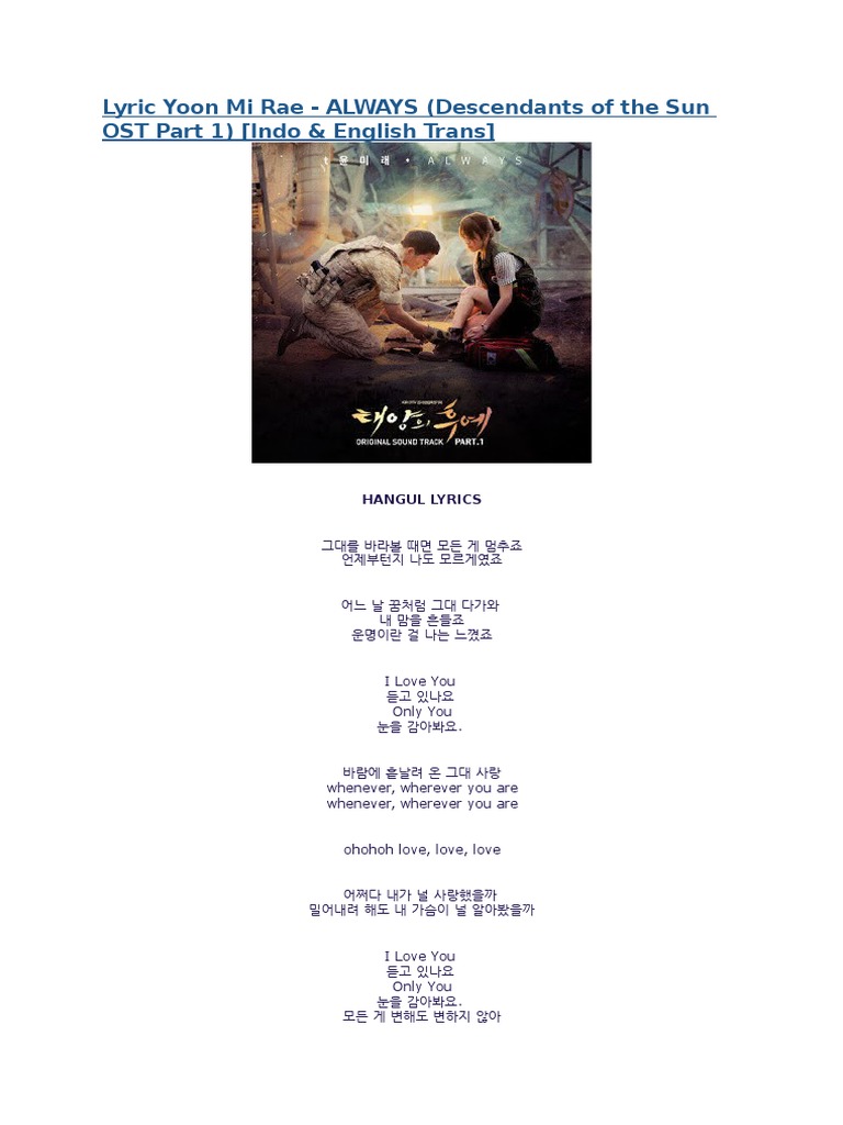 Descendants Of The Sun Ost Lyrics Mackenzieriley17 Wattpad
