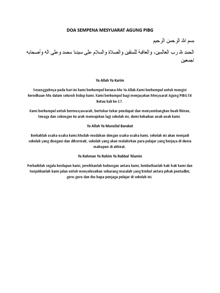 Doa Sempena Mesyuarat Agung Pibg
