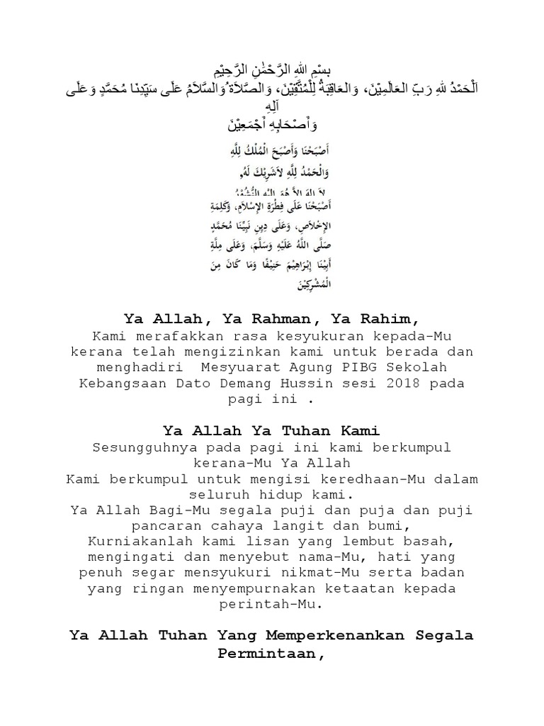 Doa Mesyuarat Agung Pibg 2018