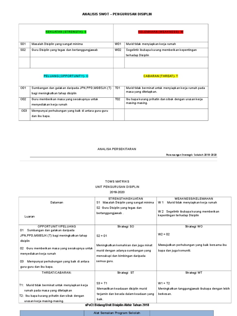 Analisis Swot Pengurusan Disiplin Kekuatan Strength S Kelemahan Weakness W