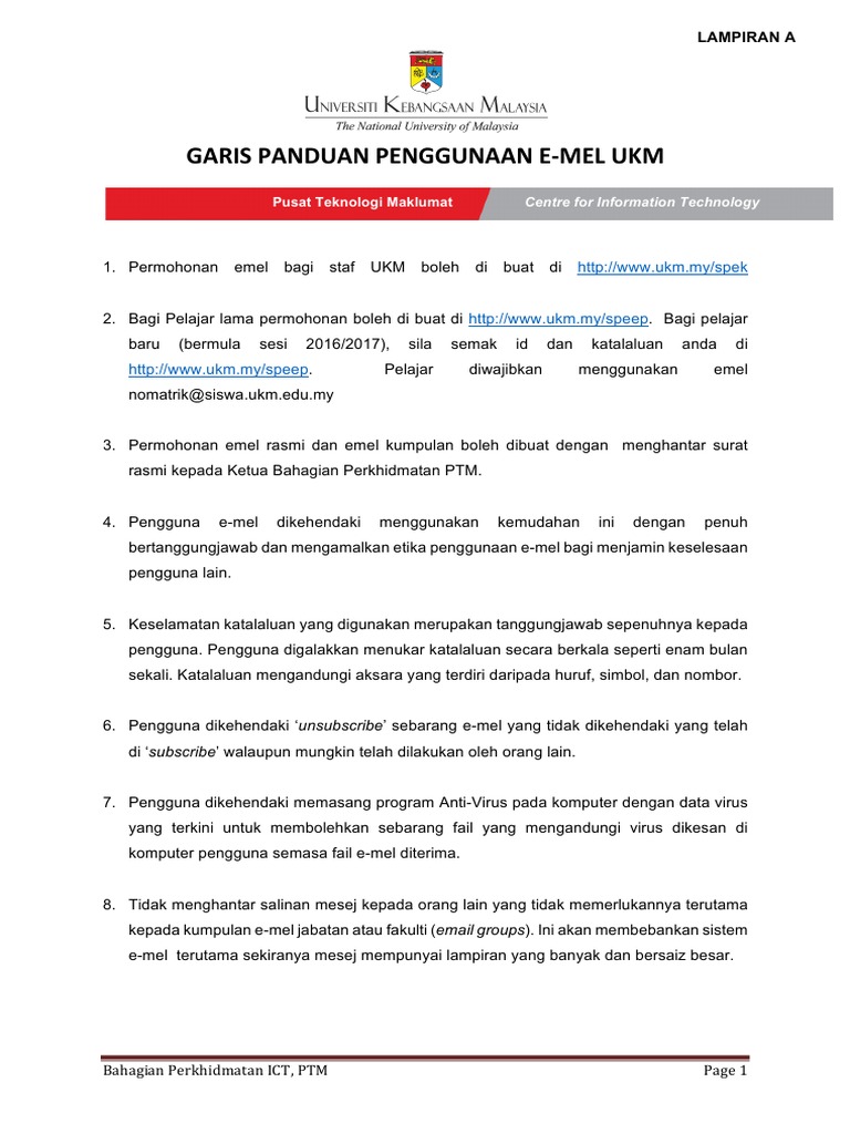 Garis Panduan Penggunaan E Mel Ukm