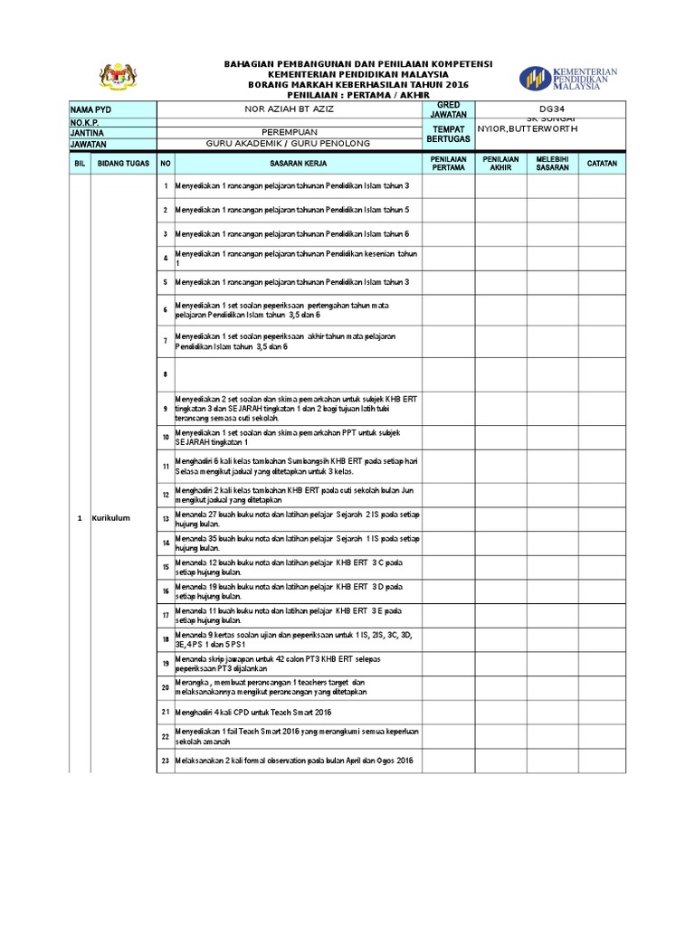 Borang Keberhasilan Guru Akademik Biasa Download School Work