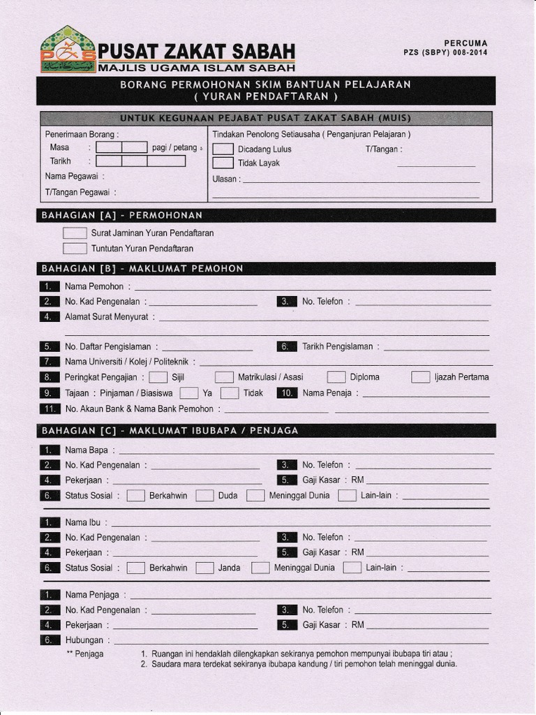 Borang Permohonan Zakat Pelajar