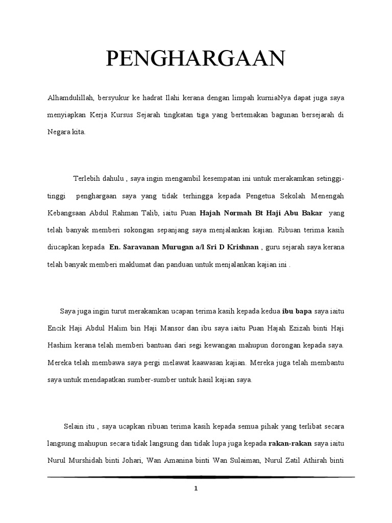 Kerja Kursus Sejarah Tingkatan 3 2018 Docx