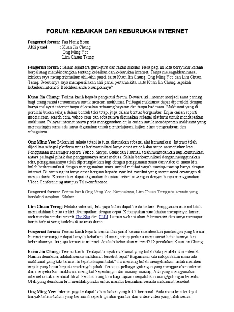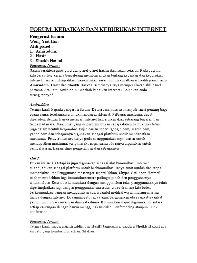 Contoh Forum Kebaikan Dan Keburukan Internet Rasmi V